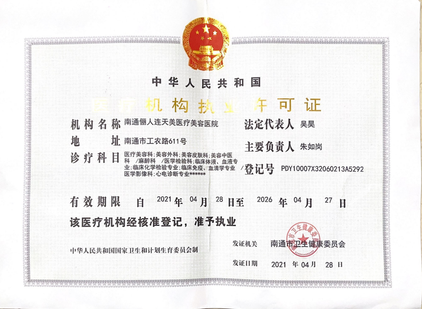 南通儷人連天美醫(yī)療美容醫(yī)院是與著名的醫(yī)療美容集團合作建立的醫(yī)院,醫(yī)院提供高品質(zhì)的醫(yī)療美容服務(wù)。2008年,南通儷人連天美醫(yī)療美容醫(yī)院落戶南通,成為由南通衛(wèi)生局審批的專業(yè)醫(yī)療美容醫(yī)院。南通儷人連天美醫(yī)療美容醫(yī)院,特別設(shè)有專業(yè)的整形美容科、皮膚美容科和微創(chuàng)美容科三大科室,致力于為廣大求美者提供全方位的醫(yī)療美容服務(wù)。南通儷人連天美醫(yī)療美容醫(yī)院為求美者建立個人終生美麗檔案,一對一進行細致服務(wù)。 11年來,南通儷人連天美醫(yī)療美容醫(yī)院,不斷引進先進設(shè)備,不斷完善醫(yī)美技術(shù),一批優(yōu)秀、專業(yè)而穩(wěn)定的醫(yī)生團隊,為無數(shù)求美者鑄就美麗夢想。